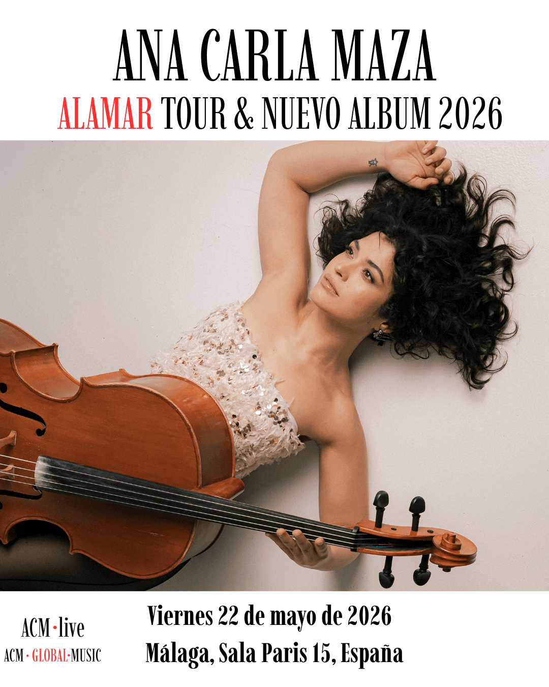 La violonchelista, cantante y compositora procedente de Cuba, Ana Carla Maza, está reconocida como una de las artistas más destacadas de la nueva generación cubana que fusiona jazz latino, salsa cubana, cumbia, tango e influencias clásicas, vuelve a Málaga el 22 de Mayo dentro se nueva gira «Alamar».