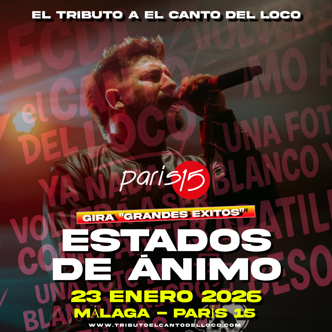 La banda mallorquina Estados de Ánimo, reconocida por Dani Martín (líder de El Canto del Loco) como la mejor banda tributo del país, regresa a Málaga con un espectáculo renovado donde repasará con su increíble puesta en escena, los grandes éxitos de El Canto del Loco.